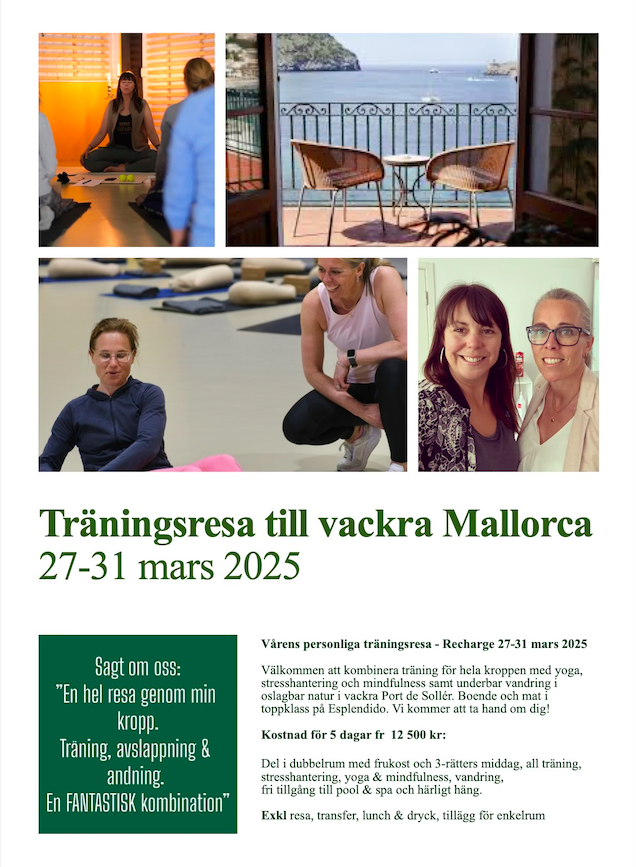 Välkommen att kombinera träning för hela kroppen med att sänka tempot inombords med yoga och mindfulness samt underbar vandring i oslagbar natur i vackra Port de Sollér. Boende och mat i toppklass på Esplendido. Res själv, med vänner och familj, en kick off som par eller kollegor. Vi kommer att ta hand om er, tillsammans skapar vi en härlig energi och fyller på energidepåerna!